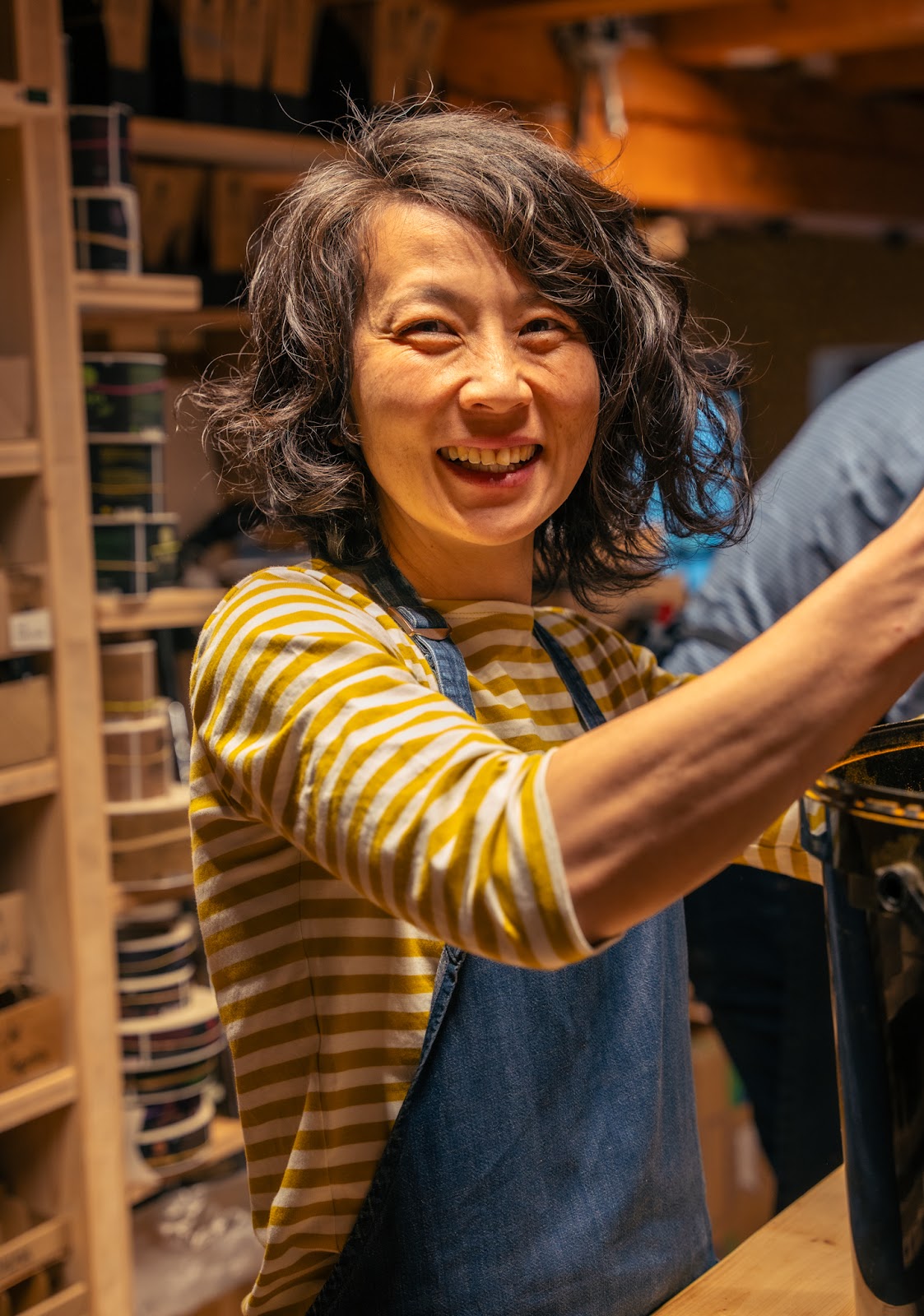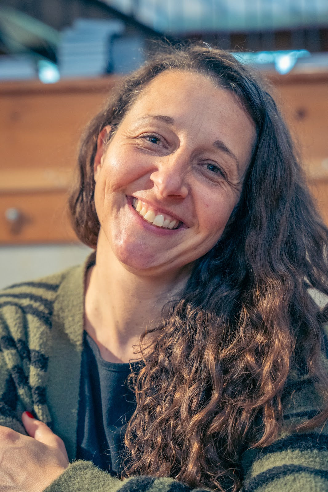 Allrounderin im Fabrikladen und an Märkten, die Kund*innen berät, den Versand und vielfältige Backoffice-Aufgaben (Text, Podcast-Edit usw.) übernimmt und mit Ruhe, Fürsorge und Tatkraft dort hilft, wo sie gebraucht wird.