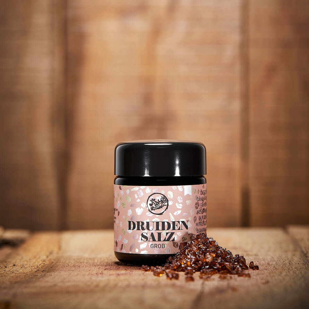 Dieses sehr intensive Dänische Rauchsalz wird drei Wochen in der Vakuum-Kammer geräuchert, mit Laub- und Nadelholz sowie Wacholder. Das Rauchsalz ist sehr stark und kann angewendet werden wie Liquid-Smoke. Nur wenige der groben Körner erzeugen bereits ein kräftiges Raucharoma.