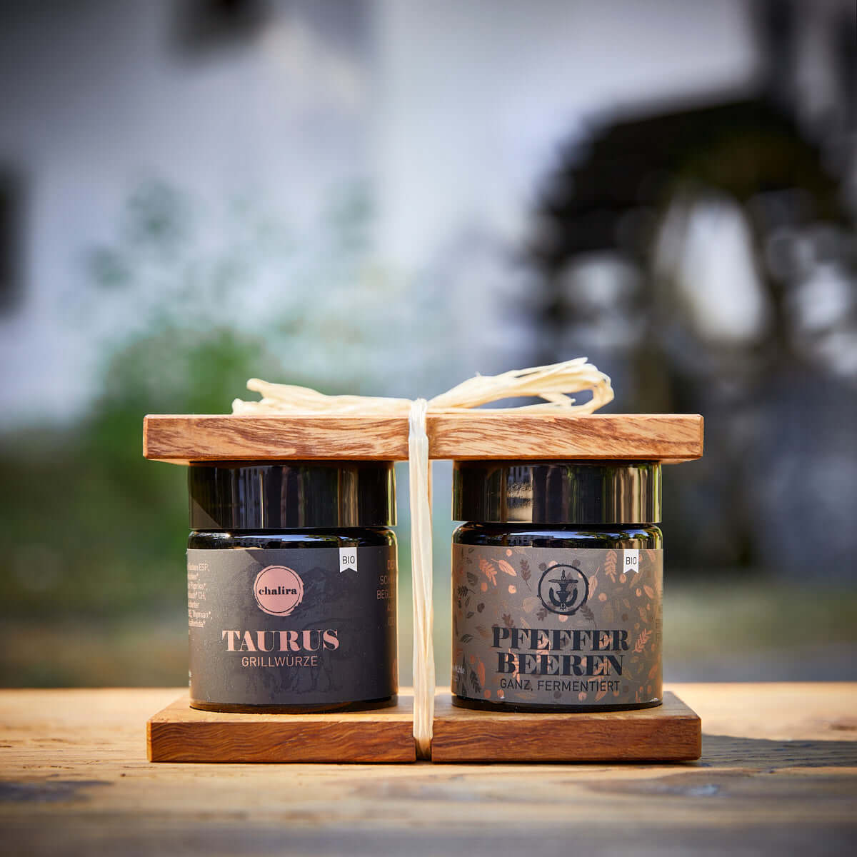 Dieses Set bringt dir die Würze auf dein Grillgut, egal ob Pilze oder Fleisch. Danach auf dem Teller abgeschmeckt: Der fermentierte Pfeffer bringt alle Gäste ins Schwärmen. Ein pikantes Duo.