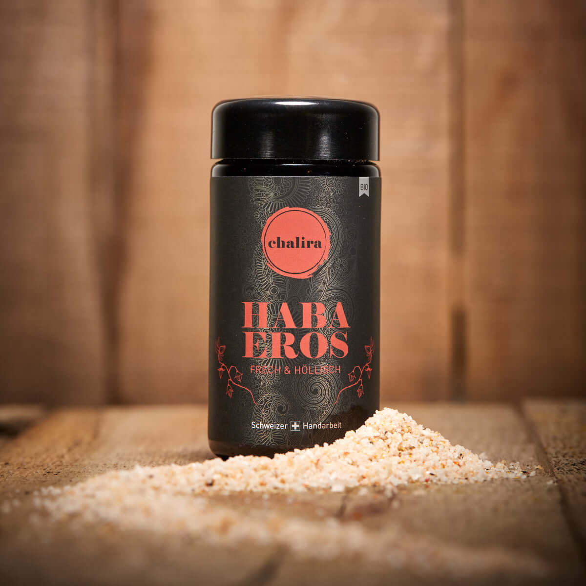 alle Zutaten stammen aus kontrolliert biologischem Anbau / 100% BIO Zwei Schweizer Bio-Bauern, bauen für uns die Habanero-Chili an. Schonend bei 34°C werden diese dehydriert und mit den Salzblüten aus dem fairen Vitasal Salzprojekt in Nordindien veredelt. Schon lange war der Wunsch nach einem scharfen Salz. Realisiert in einer simplen archaischen Mischung, um dem schönen Aroma des Habanero-Chili die volle Bühne zu geben. Also Achtung, Haba Eros bringt dich in pikante Situationen.