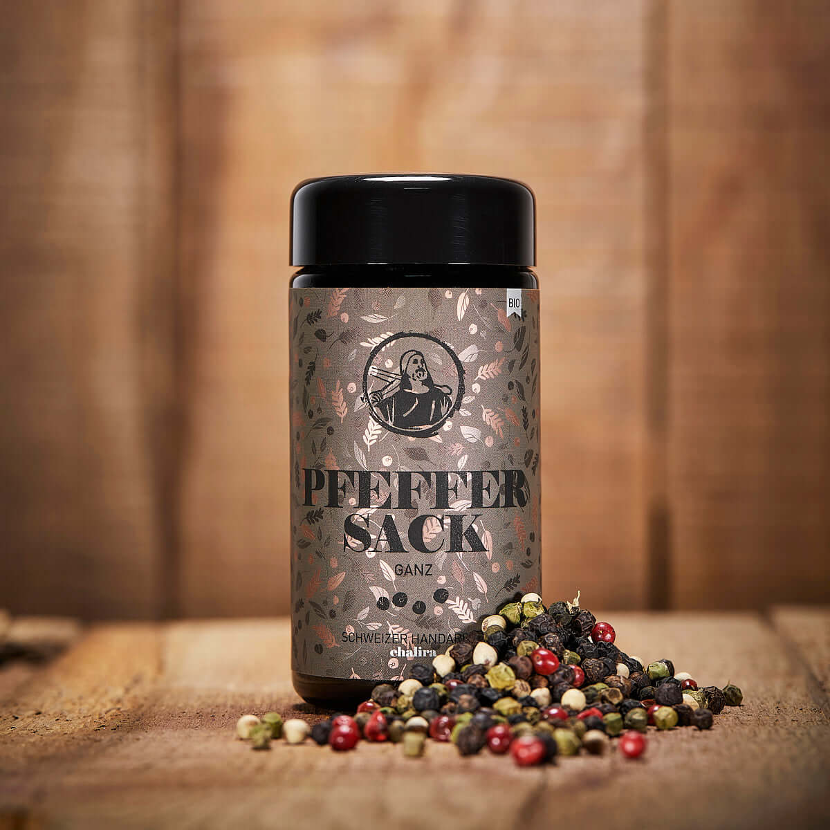 Die fein abgestimmte Pfeffermischung mit erlesenem Urwaldpfeffer aus Kerala und Amazonien. Ideal um in der Mühle oder im Mörser frisch zu mahlen.