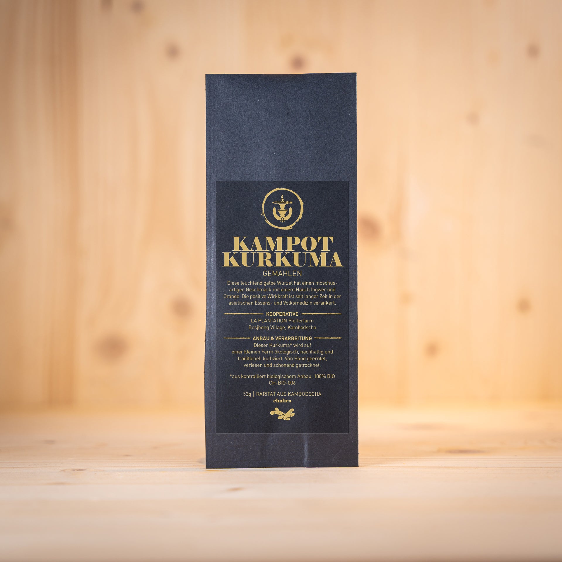 Diese leuchtend gelbe Wurzel hat einen moschusartigen Geschmack mit einem Hauch Ingwer und Orange. Die positive Wirkkraft ist seit langer Zeit in der asiatischen Essens- und Volksmedizin verankert. Rarität aus. Kambodscha